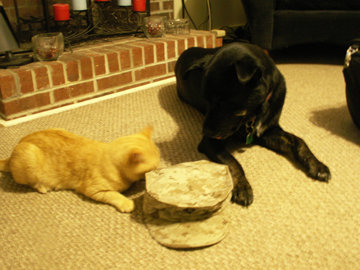 Scotch, the kitty and Belle all hanging out after the Marine deployed again in NC.